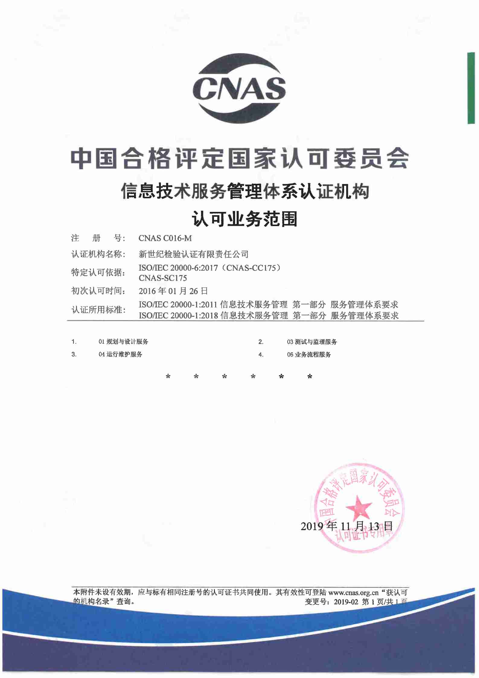信息技術服務管理體系認證機構認可證書