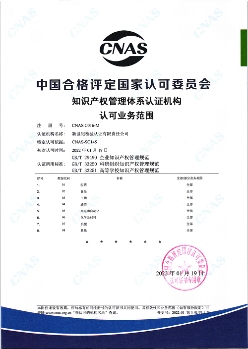 知識產權管理體系認可證書