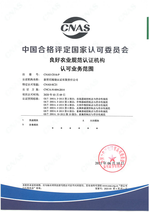 良好農業(yè)規(guī)范認可證書