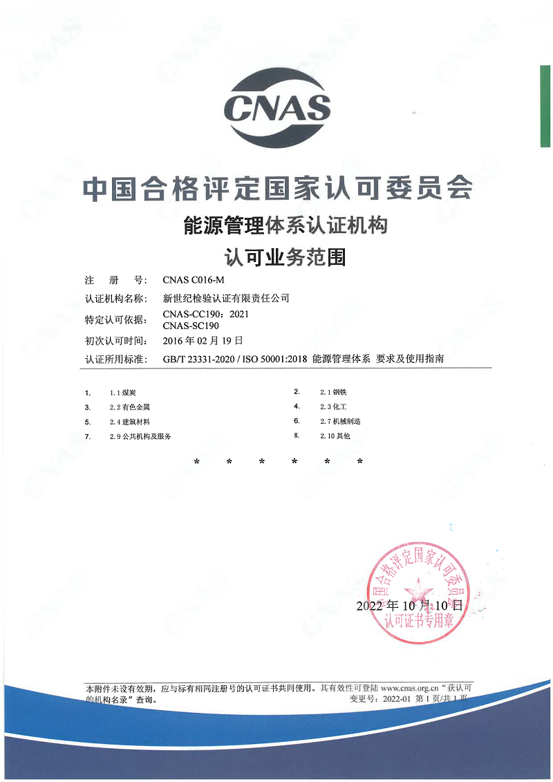 能源管理體系認證機構認可證書