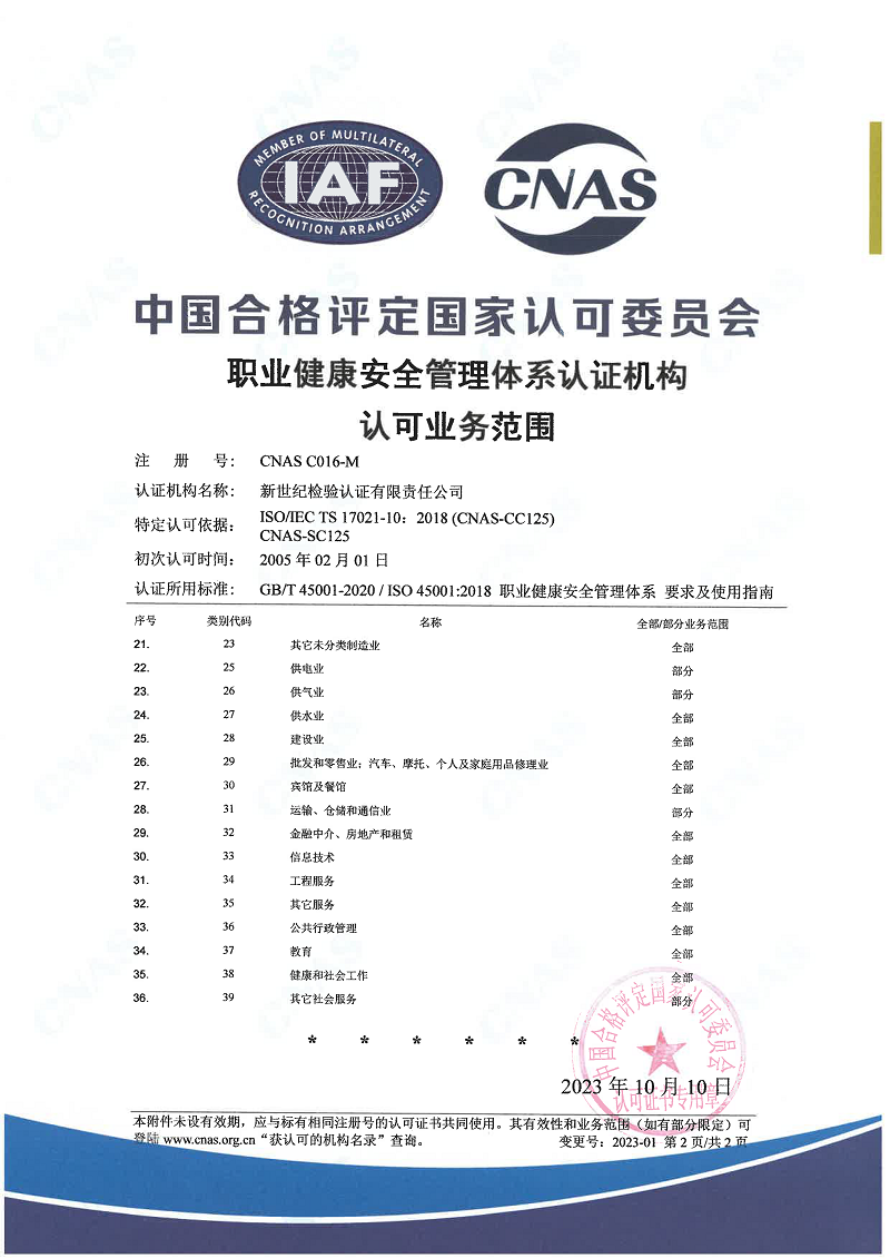 職業(yè)健康安全管理體系認證機構認可證書(二)